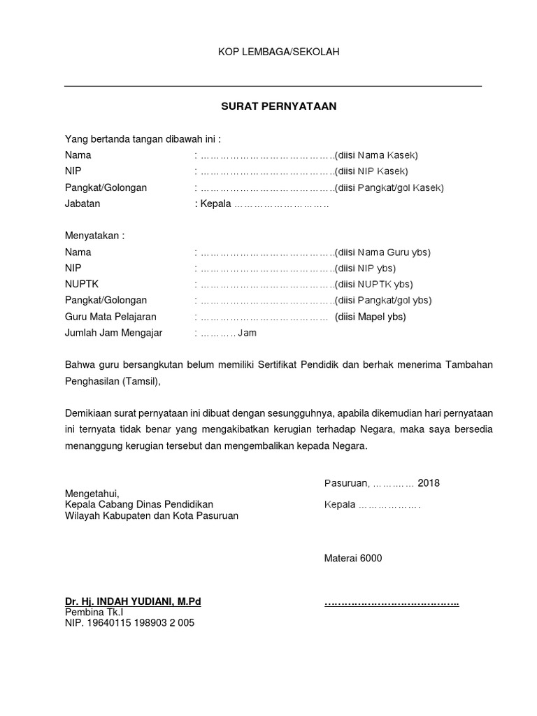 Surat Pernyataan Belum Memiliki Sertifikat Pendidik
